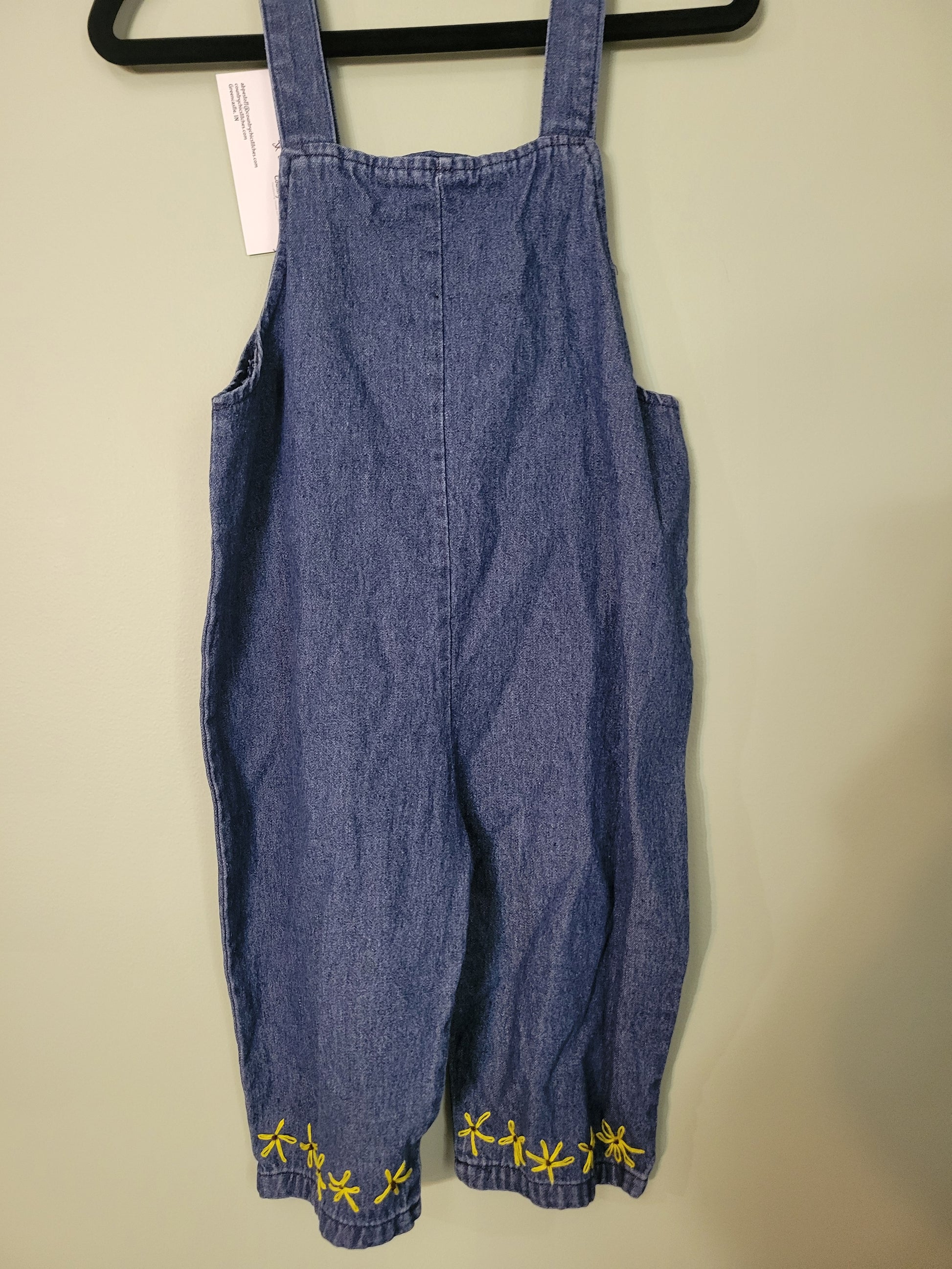 Crafted with soft, durable fabric, these overalls are made for comfort and movement, perfect for playtime, exploration, or just soaking up sunny days. Each embroidered sunflower is carefully stitched by hand, making every pair unique and full of artisanal charm.