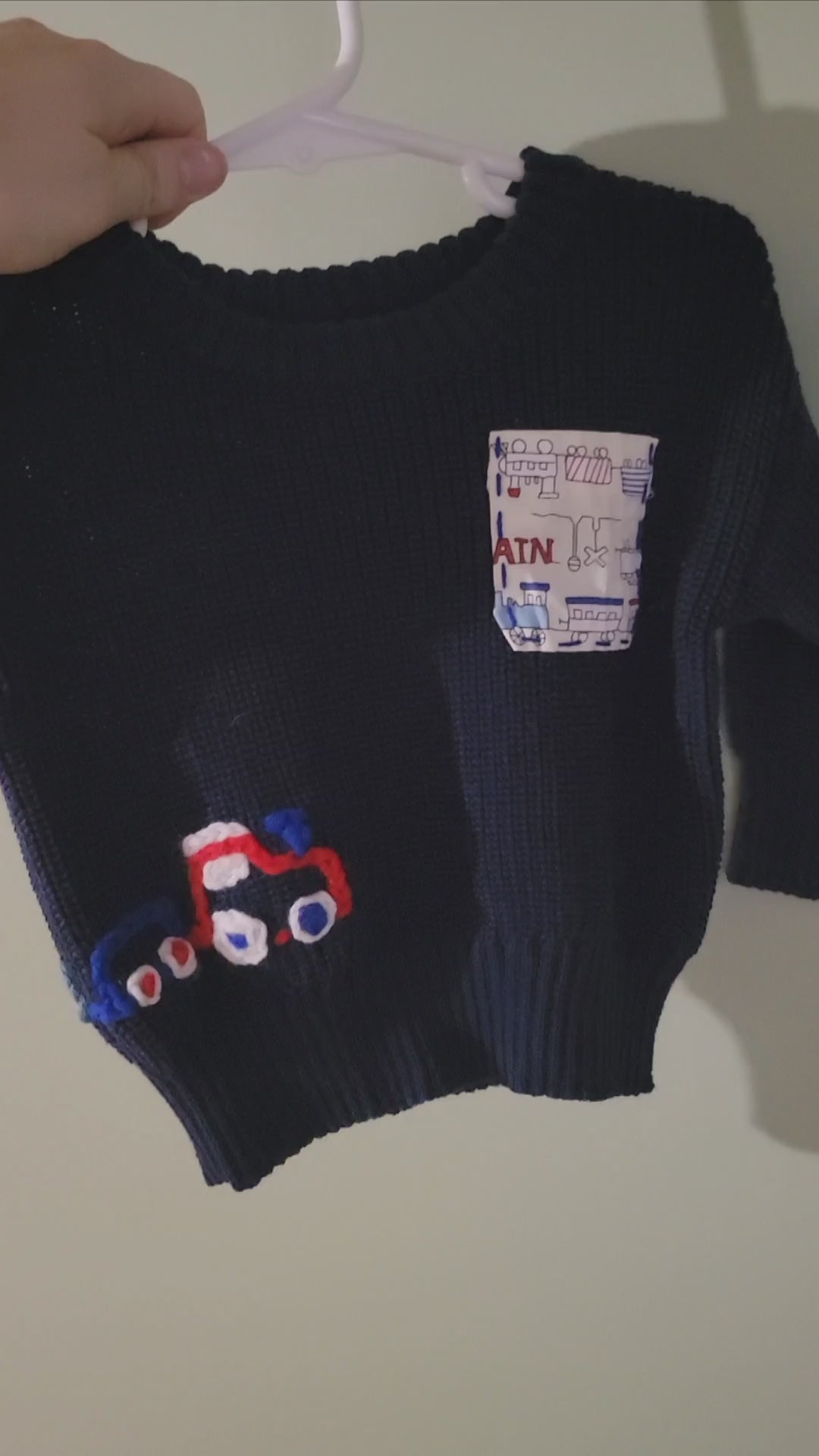 The highlight of this piece is the whimsical hand embroidery, lovingly stitched along the waist. Featuring a wrap-around train and pocket. Each detail is stitched with vibrant, high-quality threads that bring the sweater to life. No two pieces are exactly alike, giving your child a truly one-of-a-kind garment.